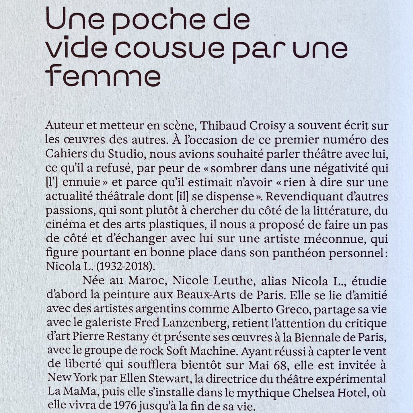 Cités) : auteure d’articles et d’essais sur les nouvelles écritures (Marion Siéfert, Latifa Laâbissi, Jonathan Capdevielle, L’Avantage du doute, Emmanuelle Raynaut, Christophe Meierhans, Karim Bel Kacem…), très en pointe sur la question « théâtre et performance » ; Maya Boquet et Élise Simonet, dramaturges dont nous avons déjà parlé (la deuxième a co-signé par deux fois la programmation du Festival TJCC – Très jeunes créateurs contemporains au Théâtre de Gennevilliers) ; ou encore Ada Loueilh, scénariste, réalisatrice et lectrice pour Flammarion dont le regard m’est précieux.